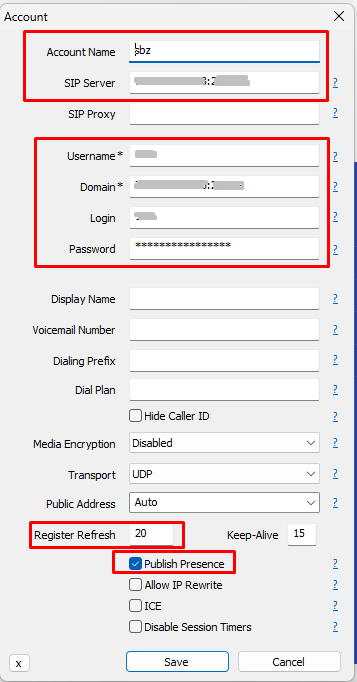 SIP server: Ο διακομιστής και η θύρα του τηλεφωνικού μας κέντρου χωρισμένα με :