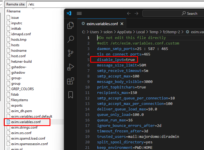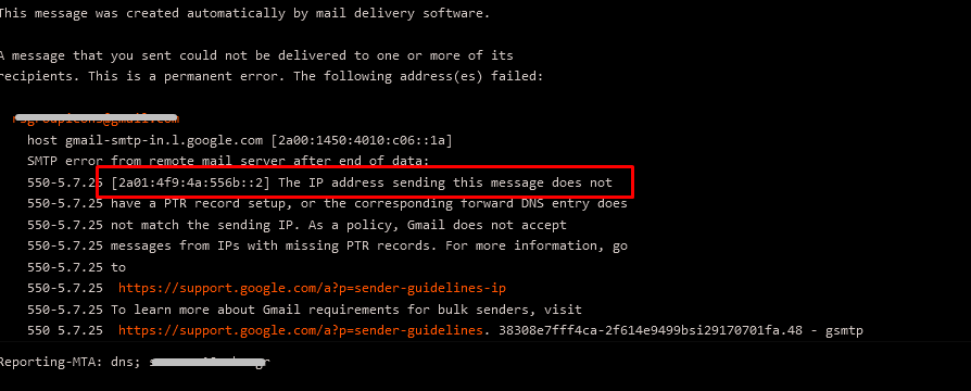 Μη παράδοση μηνύματος Post category:Email Collector & Sender / Γενικά θέματα linux Εάν σας εμφανιστεί το παρακάτω σφάλμα, θα πρέπει να απενεργοποιήσετε την ipv6. Θα πάτε στο Dashboard του DirectAdmin, Show Services και θα επιλέξετε το “exim”. Τέλος, στο αρχείο “exim.variables.conf”, θα θέσετε την γραμμή “disable_ipv6” σε “true”.