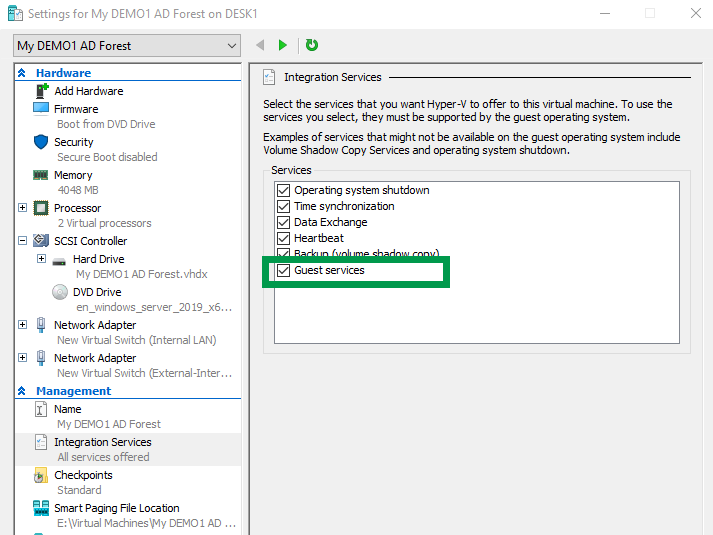 Perform the following steps to install Active Directory Services for a new forest, DNS and DHCP server on the virtual machine.