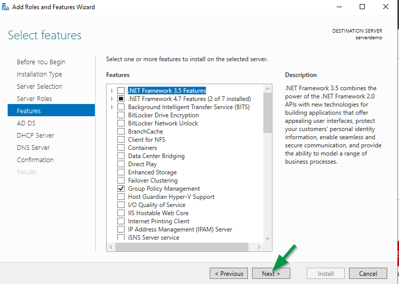 Click Next at the “Select Features” screen.