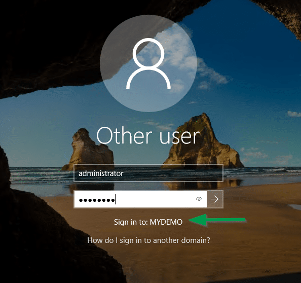 Once the roles installation is complete, the server will automatically reboot and you will see the NEW domain login screen.
