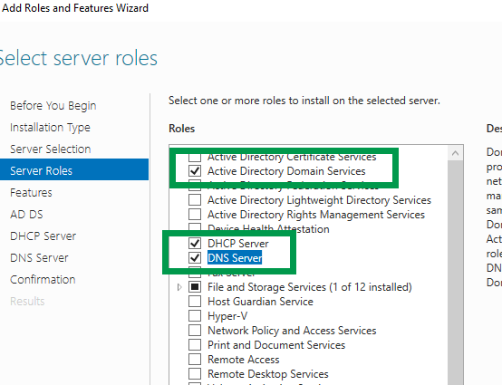 Install Active Directory Services, DHCP and DNS Roles