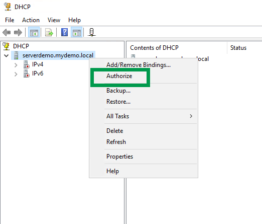The final step that needs to be performed is authorizing the DHCP server and creating / enabling the DHCP client scope.