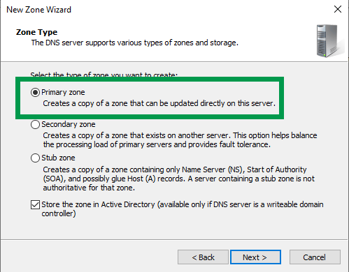 At the “Zone Type” screen leave the default option selected and click Next.