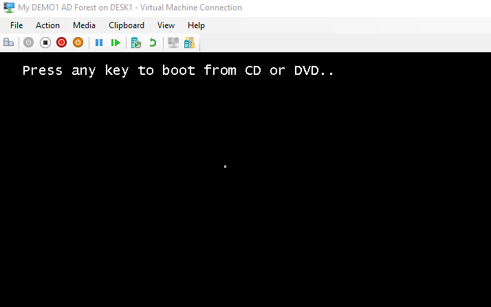 Συνδεθείτε στη νέα VM και σύντομα πατήστε ένα κουμπί για να κάνετε boot στο ISO του Windows Server 2019. Πατάτε “Start“.