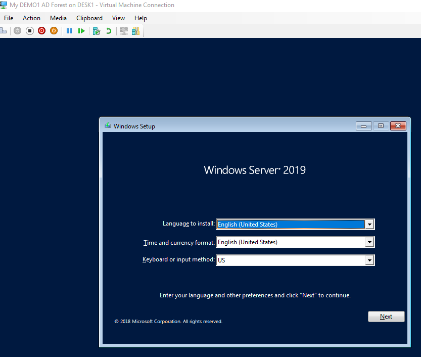 Εγκατάσταση του Windows Server 2019 OS