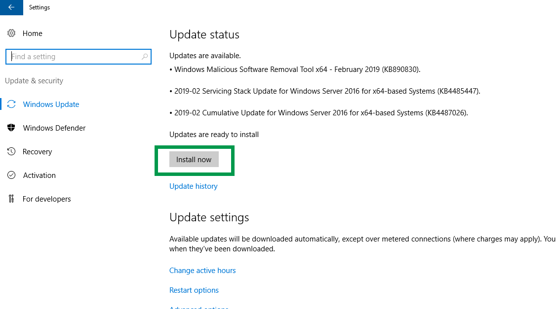 - Install Windows Server 2019 Updates