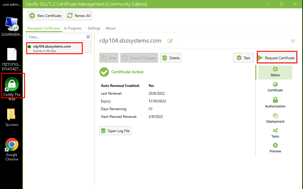 Εγκατάσταση πιστοποιητικού για RDP σε windows server