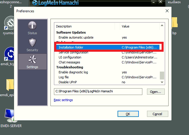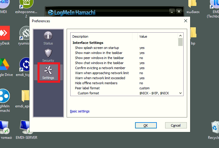 Αρχικά θα πάω στις ρυθμίσεις στο Hamachi.