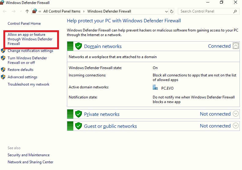 Μετά θα πάω στο windows firewall για να ανοίξω την συγκεκριμένη εφαρμογή.