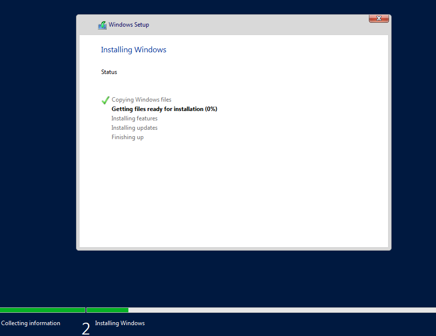 Επιλέγετε γλώσσα, προσπερνάτε ή προσθέτετε ένα product key, επιλέγετε “Windows Server 2019 Standard (Desktop Experience)”, κάνετε φορμάτ το τμήμα το δίσκου και ξεκινάει η εγκατάσταση του OS.